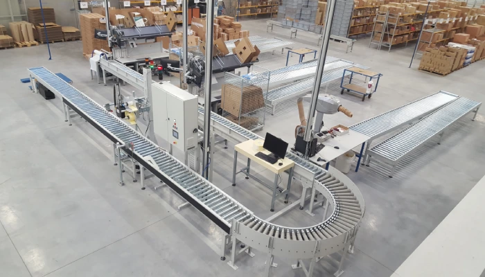 - Intégration de machines d’emballage : cercleuse, scotcheuse, formeuse, barquetteuse, pose coiffe, …