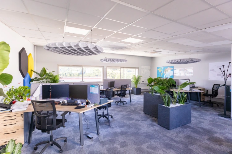 Des ilots de verdure viennent compléter cet environnement confortable afin de délimiter élégamment les espaces de travail tout en purifiant l’air intérieur.